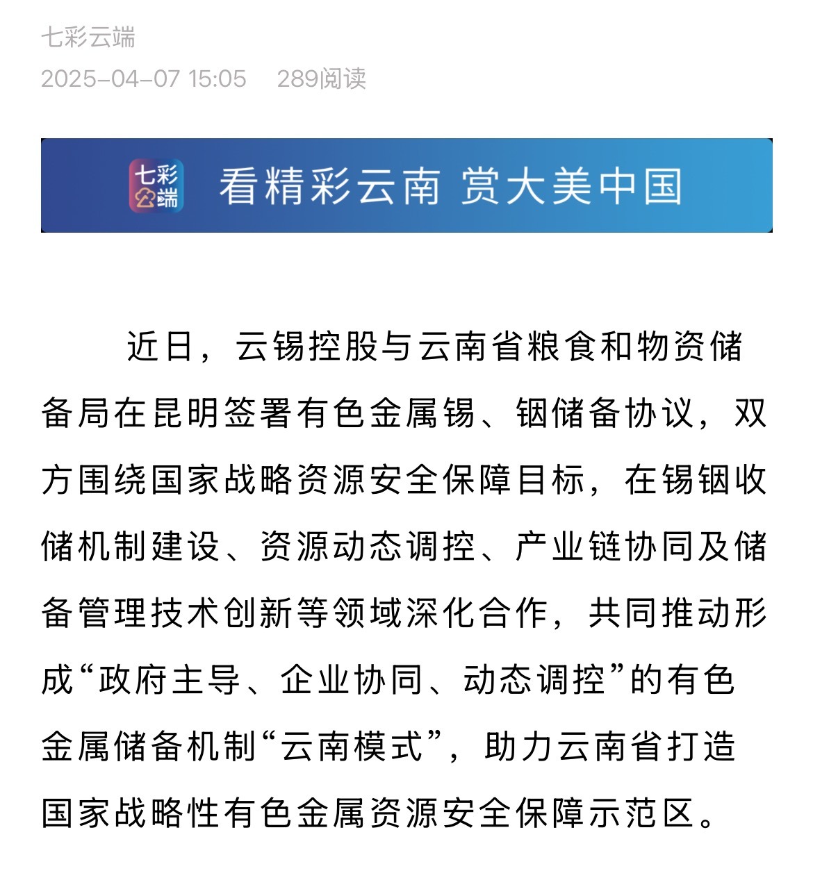 來源:新華財經、七彩云端、中國有色金屬報、有色新聞、云南政協報