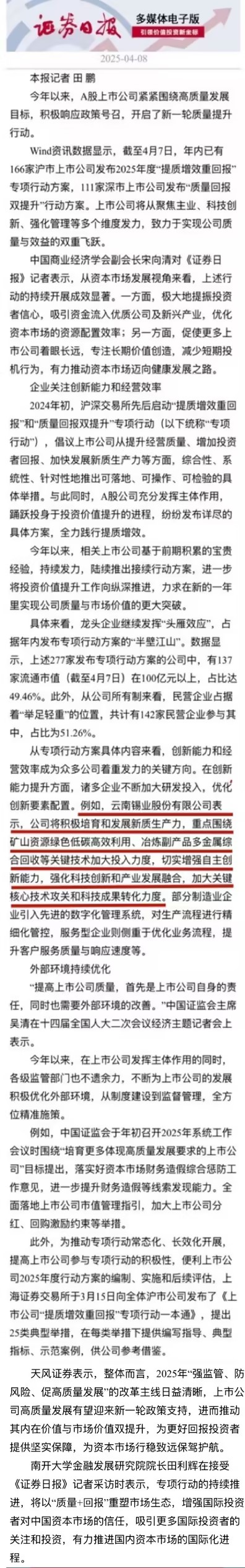 證劵日報:A股上市公司開啟新一輪質量提升行動 龍頭企業繼續發揮“頭雁效應”