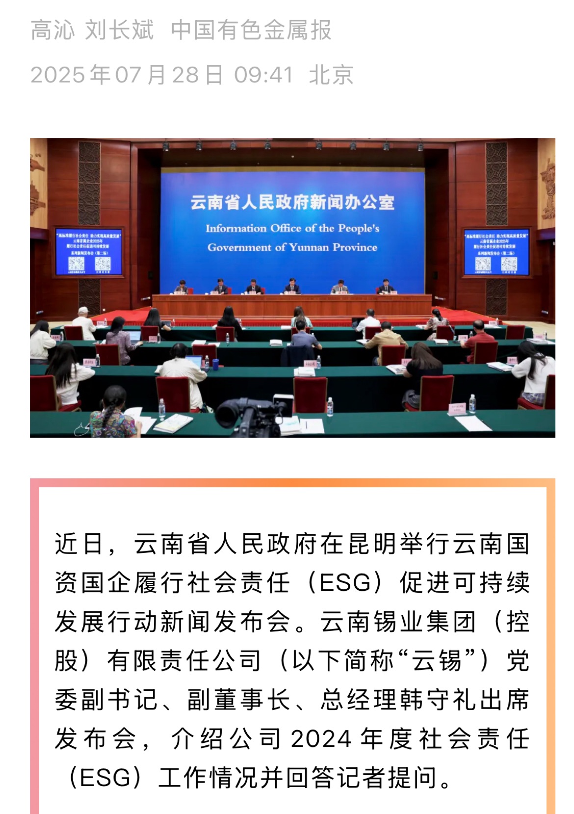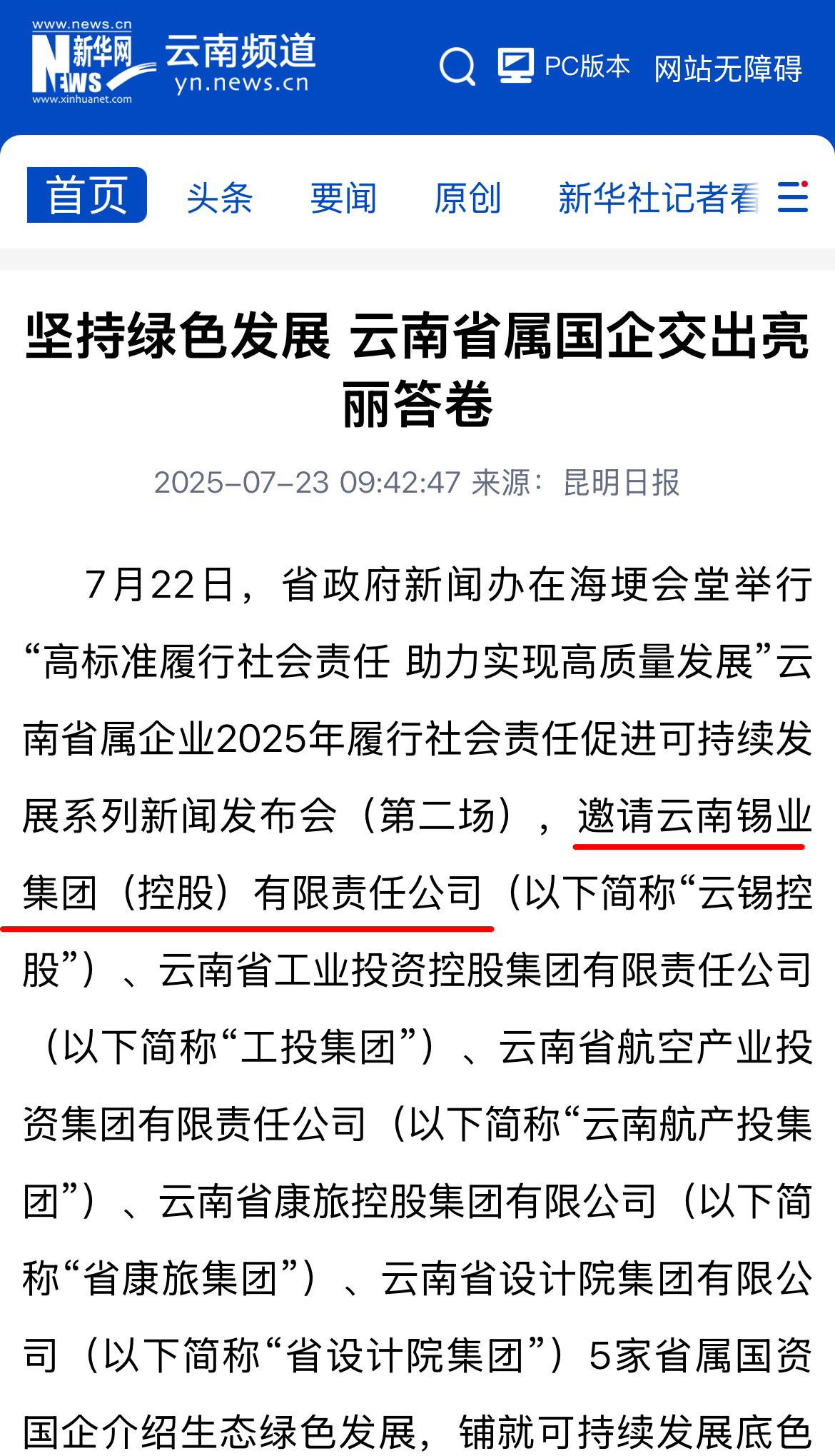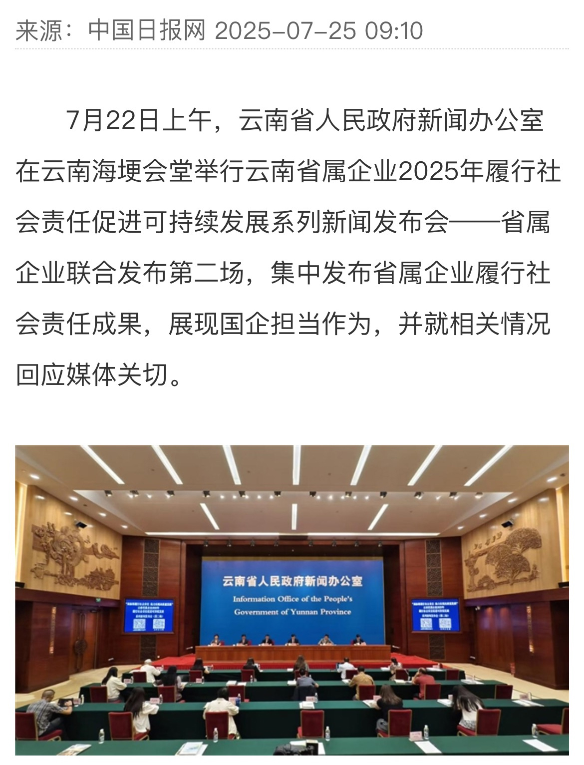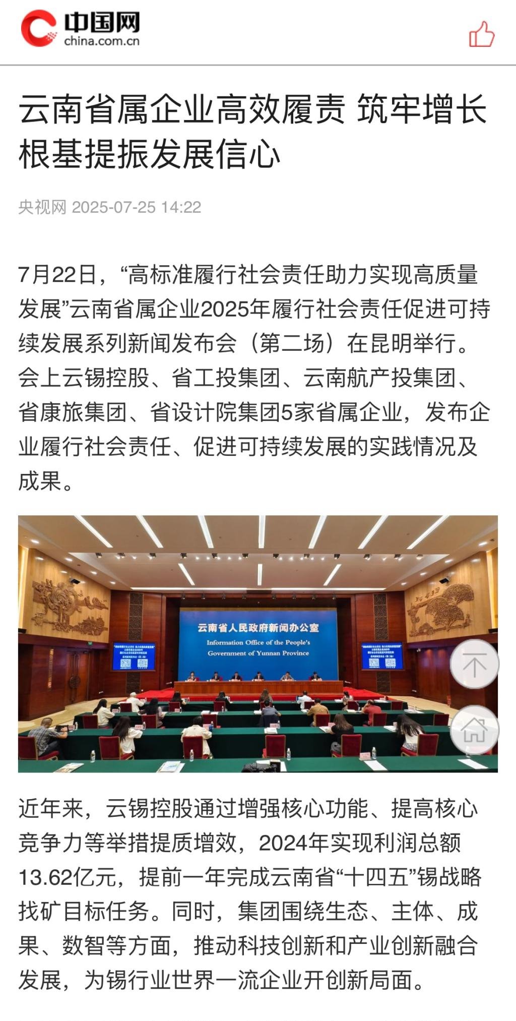 鏈接:(央廣網(wǎng))、(央視影音)、(新華網(wǎng))、(新華時(shí)訊)、(中國(guó)日?qǐng)?bào)網(wǎng))、(中國(guó)新聞網(wǎng))、(中國(guó)網(wǎng))(云南新聞聯(lián)播)、(云南衛(wèi)視晚間新聞)、(云南發(fā)布)、(云南日?qǐng)?bào))、(云南日?qǐng)?bào)-云新聞)、(云南網(wǎng))、(七彩云端)、(云南省人民政府)、(云嶺先鋒網(wǎng))、(云南國(guó)資)、(云南政協(xié)報(bào))、(有色金屬報(bào))、(有色新聞)、(騰訊新聞)、(今日頭條)、(搜狐)、(網(wǎng)易)、(新浪微博)、(新浪財(cái)經(jīng))、(都市時(shí)報(bào))、(國(guó)泰君安)、(昆明日?qǐng)?bào))、(春城晚報(bào))、(昆明信息港)、(開屏新聞