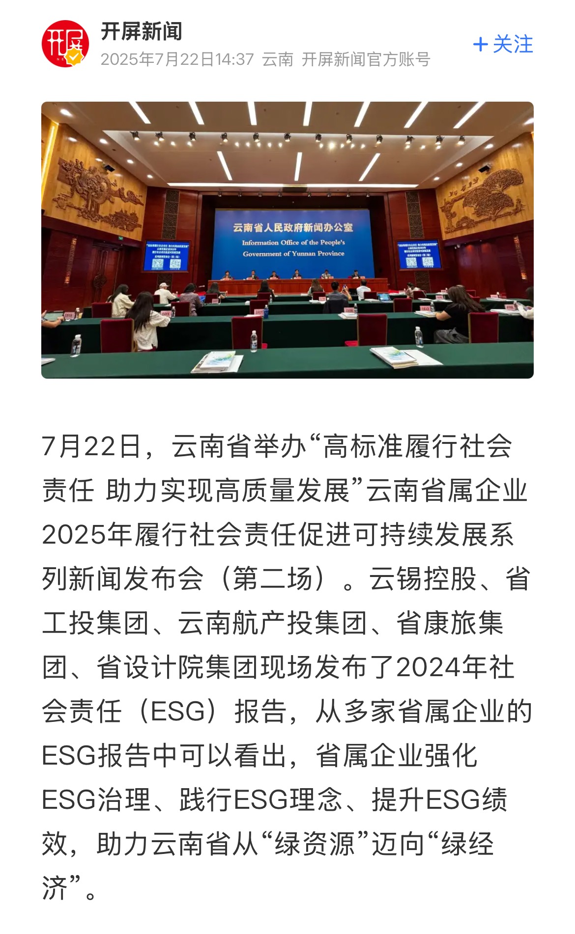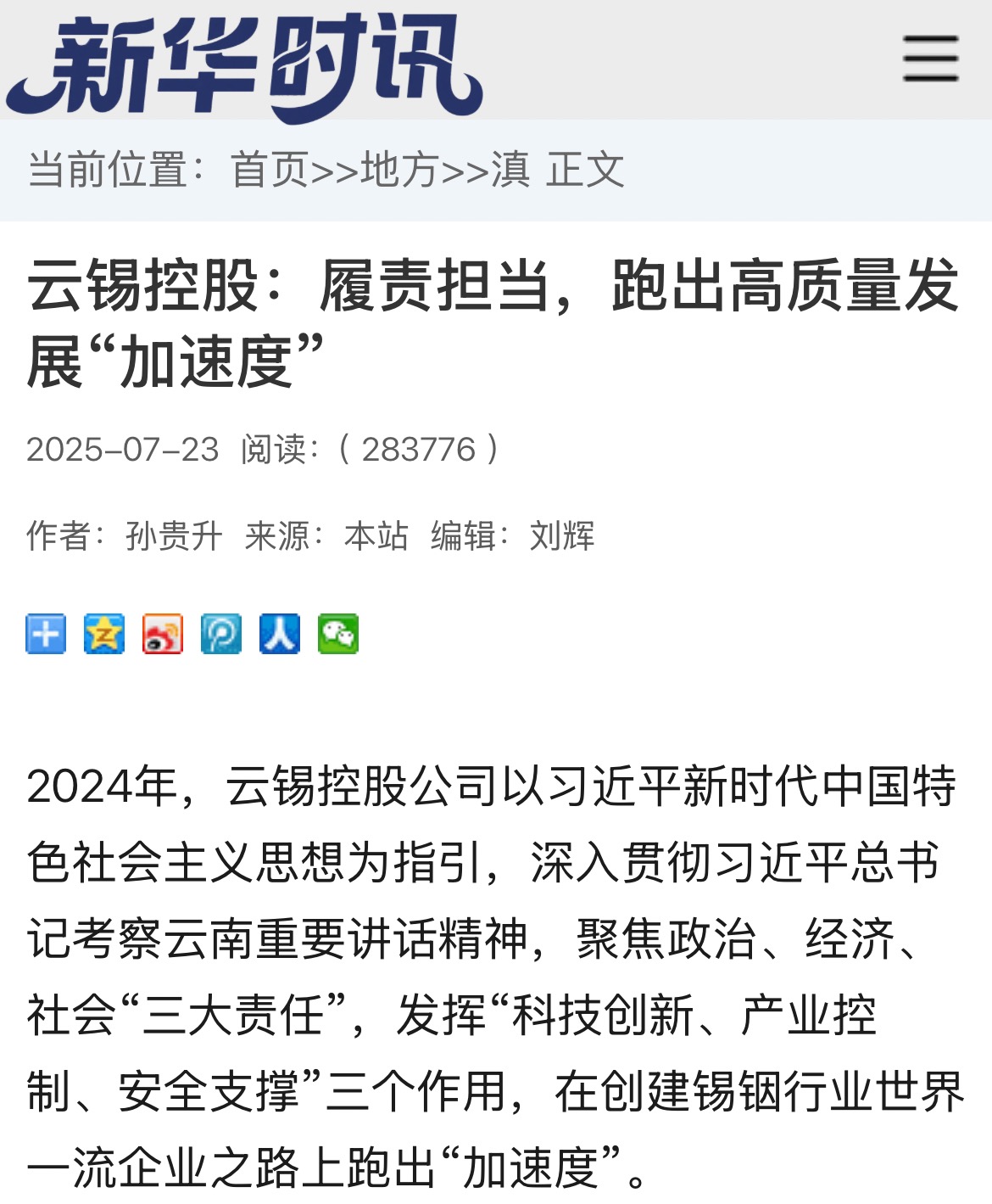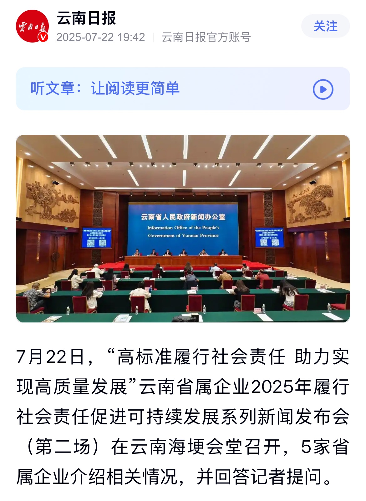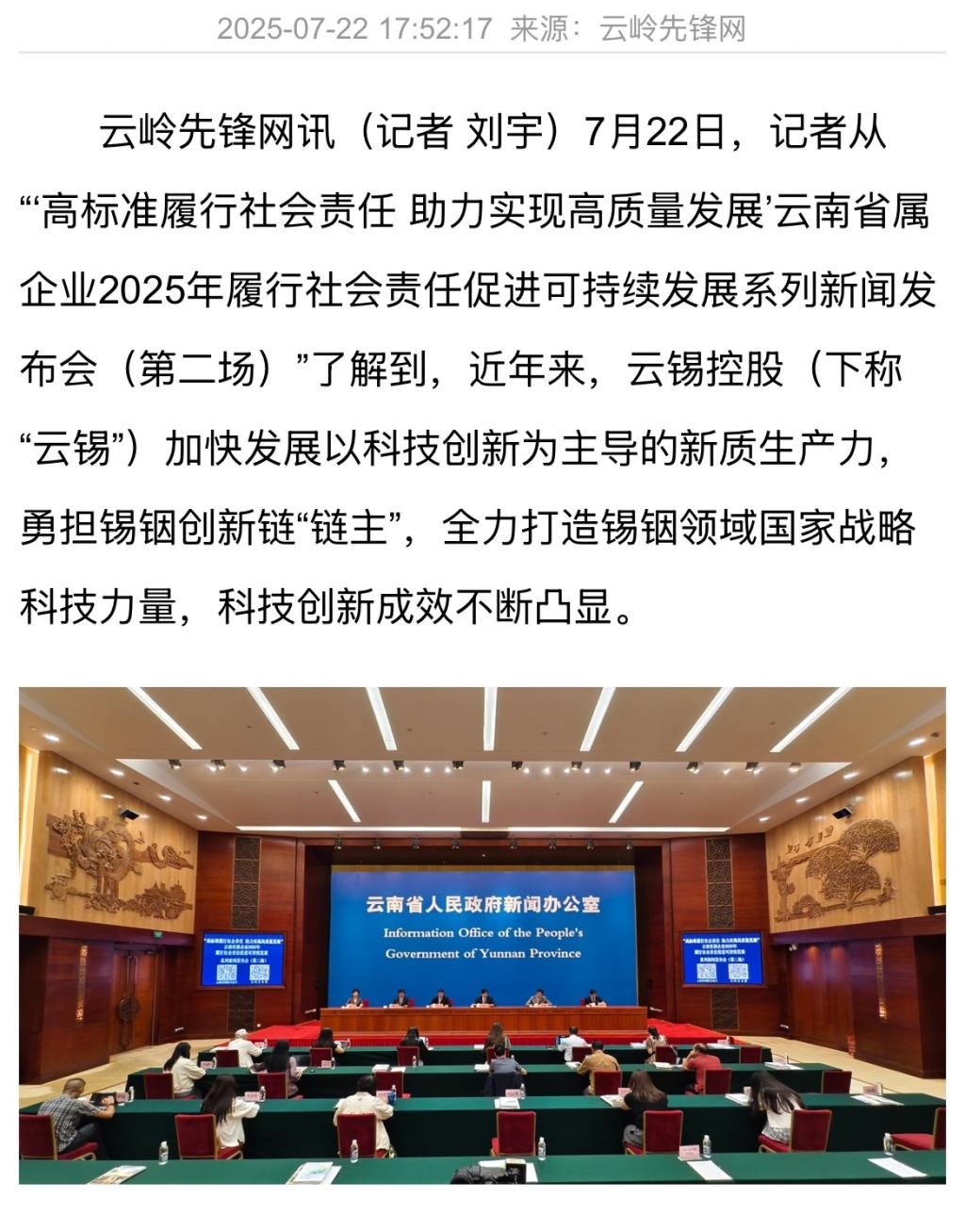 鏈接:(央廣網(wǎng))、(央視影音)、(新華網(wǎng))、(新華時(shí)訊)、(中國(guó)日?qǐng)?bào)網(wǎng))、(中國(guó)新聞網(wǎng))、(中國(guó)網(wǎng))(云南新聞聯(lián)播)、(云南衛(wèi)視晚間新聞)、(云南發(fā)布)、(云南日?qǐng)?bào))、(云南日?qǐng)?bào)-云新聞)、(云南網(wǎng))、(七彩云端)、(云南省人民政府)、(云嶺先鋒網(wǎng))、(云南國(guó)資)、(云南政協(xié)報(bào))、(有色金屬報(bào))、(有色新聞)、(騰訊新聞)、(今日頭條)、(搜狐)、(網(wǎng)易)、(新浪微博)、(新浪財(cái)經(jīng))、(都市時(shí)報(bào))、(國(guó)泰君安)、(昆明日?qǐng)?bào))、(春城晚報(bào))、(昆明信息港)、(開屏新聞
