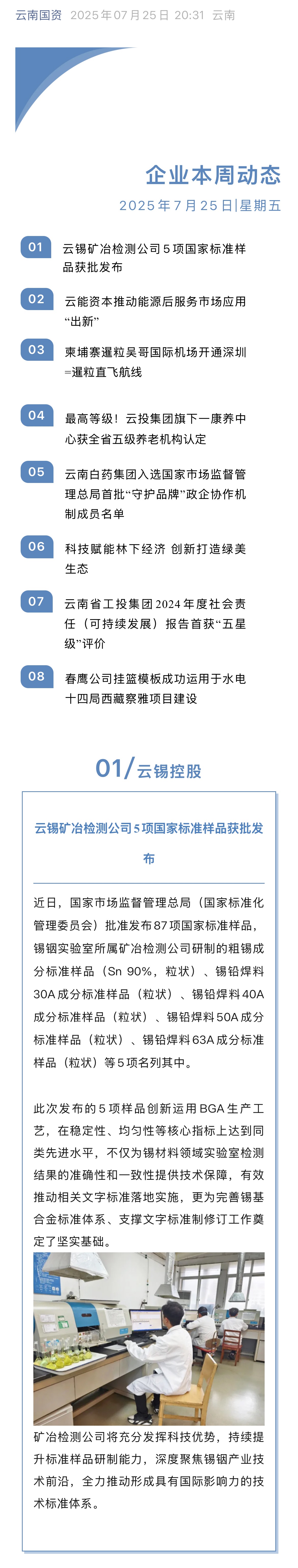 云南國資:云錫礦冶檢測公司5項國家標準樣品獲批發布