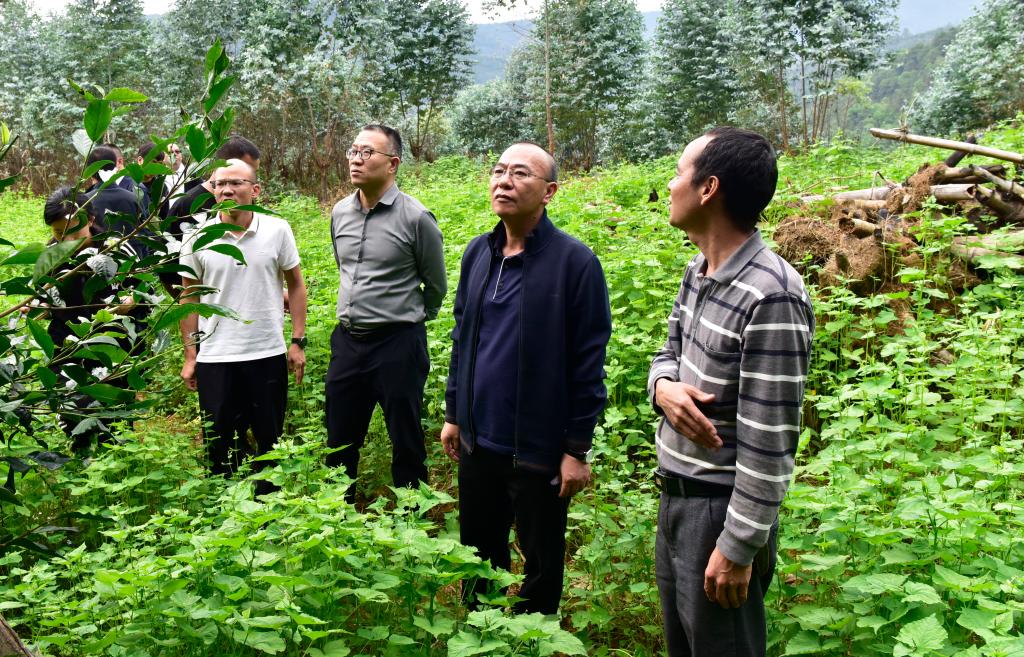 在上波依村民小組,孫勇實地查看了茶葉種植情況。