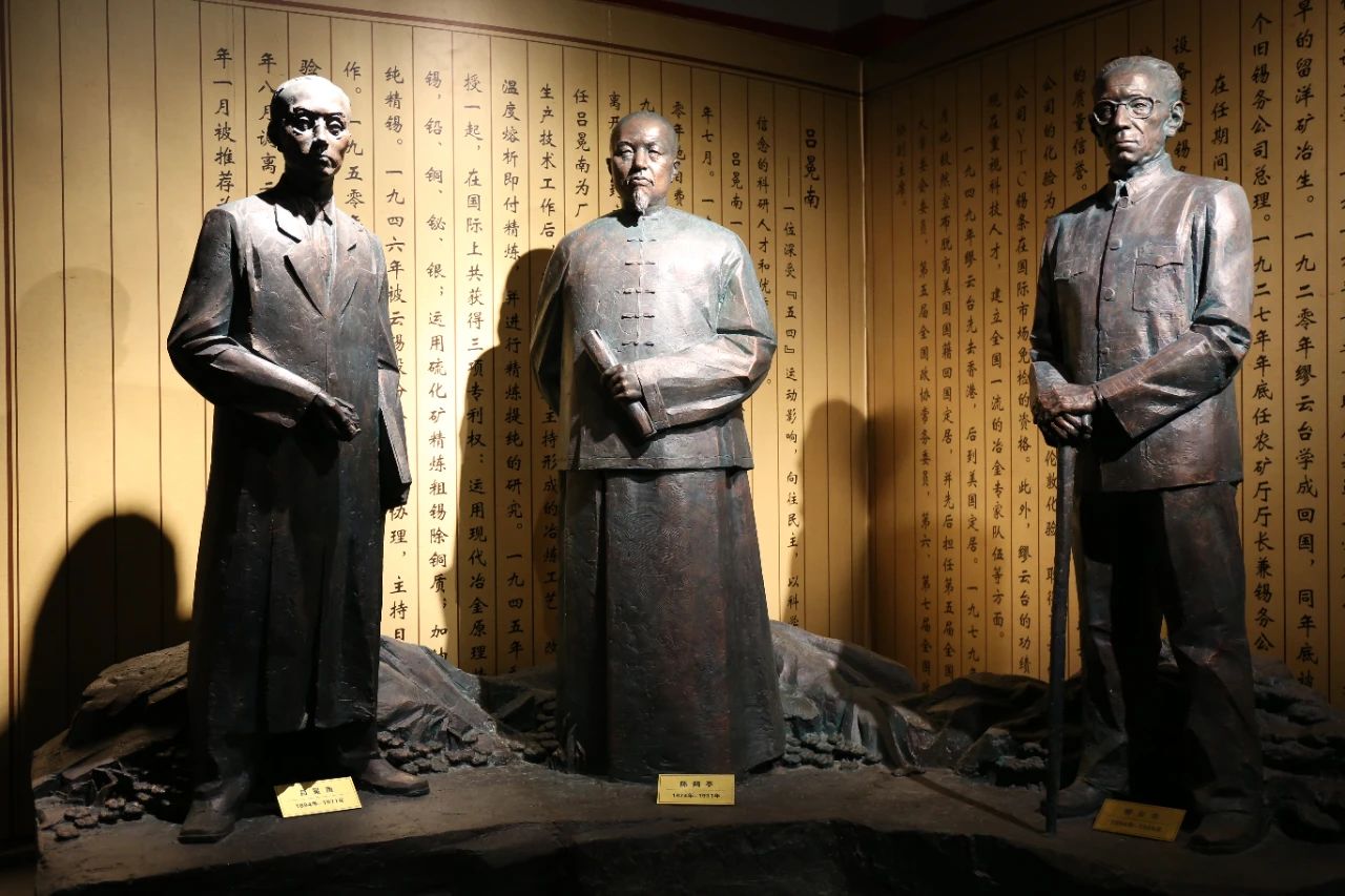 清末民初,在與列強殖民者、舊中國黑暗勢力的抗爭中,以陳鶴亭、繆云臺、呂冕南“云錫三杰”為代表的錫業精英,毅然扛起“產業報國、科技興企”的大旗,以一脈相承的赤子情懷詮釋云錫產業報國之情。1933年3月,繆云臺推行技術創新、經營創新,煉出99.75%上錫,與當時國際英美一流錫齊名。1936年10月,陳鶴亭主修中國唯一一條主權最完整的個碧石民營鐵路竣工通車,銀光閃閃的大錫通過鐵路頻頻輸向全國、運往海外。1946年6月,呂冕南滴定法直接測定精錫含量獲得成功,達到國際先進水平并得到各國確認,自此,精錫免檢銷往世界。
