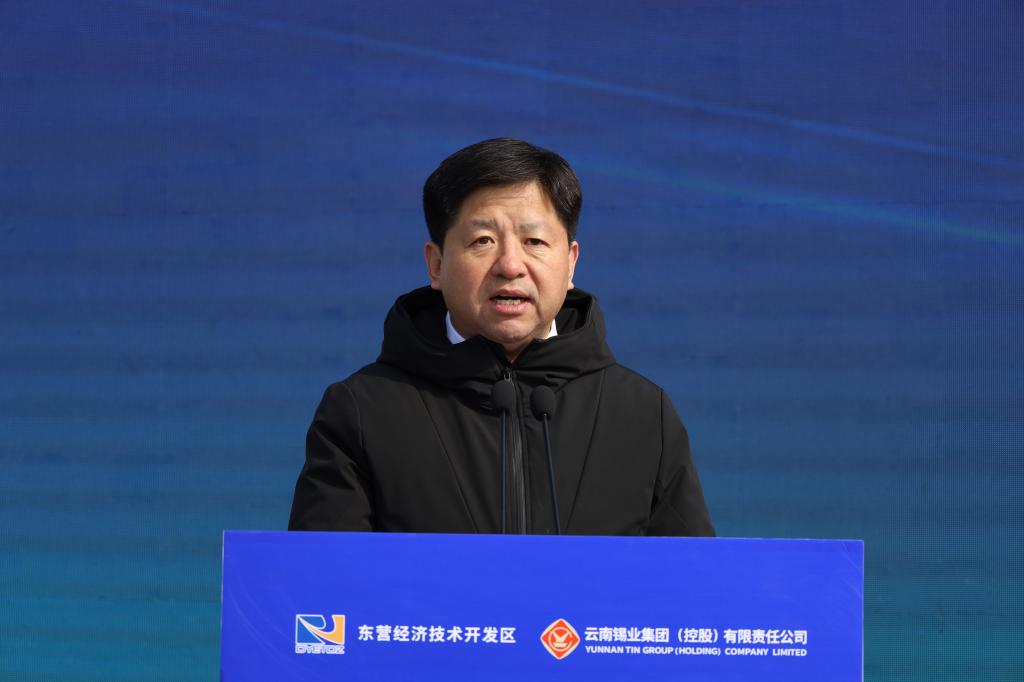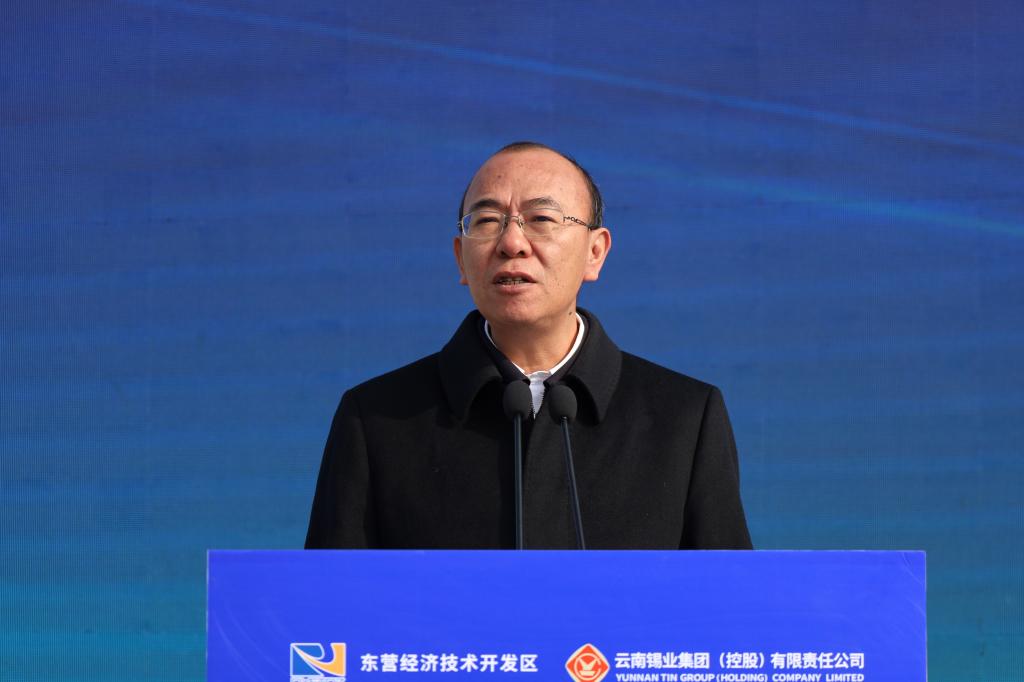 孫勇在致辭中代表公司對項目開工表示熱烈祝賀!向關心支持項目建設的東營市委市政府、東營經濟技術開發區的各位領導及各位來賓表示衷心感謝!他指出,云錫新材料產業園(華東)項目是云錫主動融入現代化產業體系建設、戰略性新興產業培育等國家重要戰略部署,全面推動云錫“3815”戰略發展目標落地的具體實踐;是云錫擴大對外開放,以產業化思維、市場化機制,打造產業鏈、共享價值鏈的重要項目。項目建成達產后,將有效助力云錫突破精深加工產業產能上限、拓展新業務領域,放大全產業鏈協同效應,為云錫培育具有中高端材料領先優勢的新材料及精深加工產業戰略單元、打造新增長極提供強力支撐。同時,希望云錫參與項目建設的單位,緊盯目標任務,抓好進度、質量、安全、成本“四項管控”,全力以赴確保項目如期建成投產,為下游客戶創造更多的應用領域,努力打造行業領先、技術一流、產品過硬的“新標桿”。