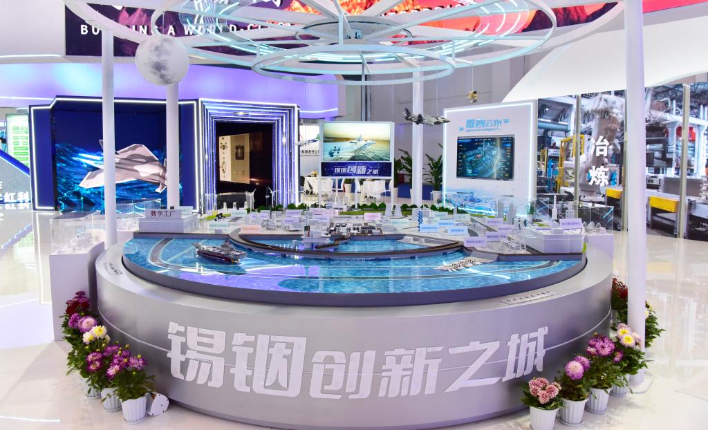 航母、衛星、智能機器人……裸眼3D折角屏以極具視覺震撼的特效,生動展示錫基、銦基合金在大國重器制造中的應用,成為制造業館最亮眼的打卡點。