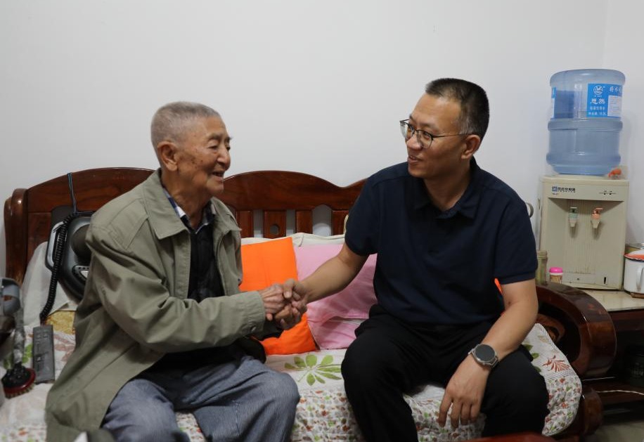 控股公司黨委副書記、工會主席劉俊走訪慰問離休干部馬天慶(彭金睿/攝)