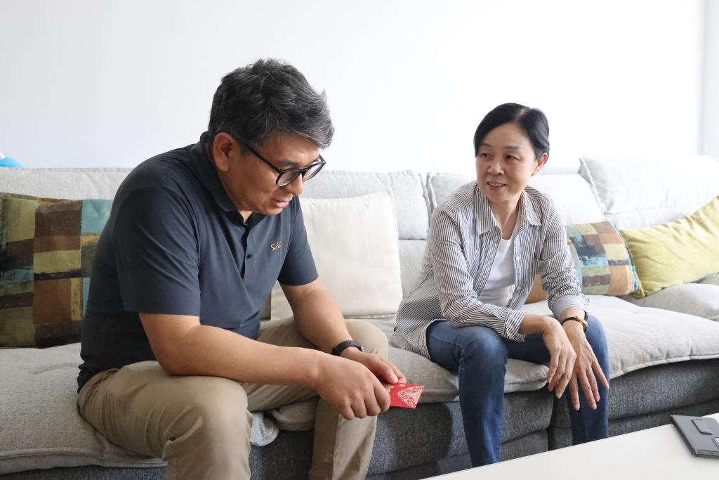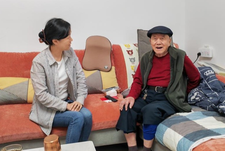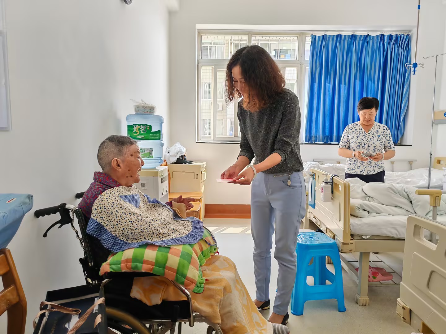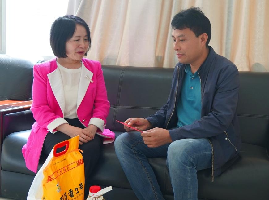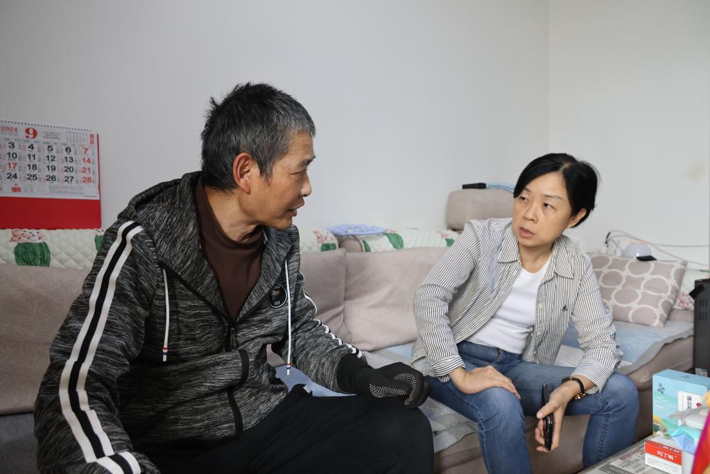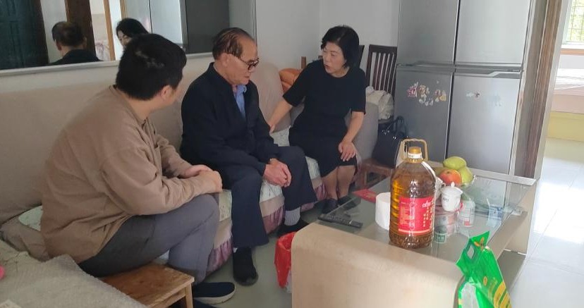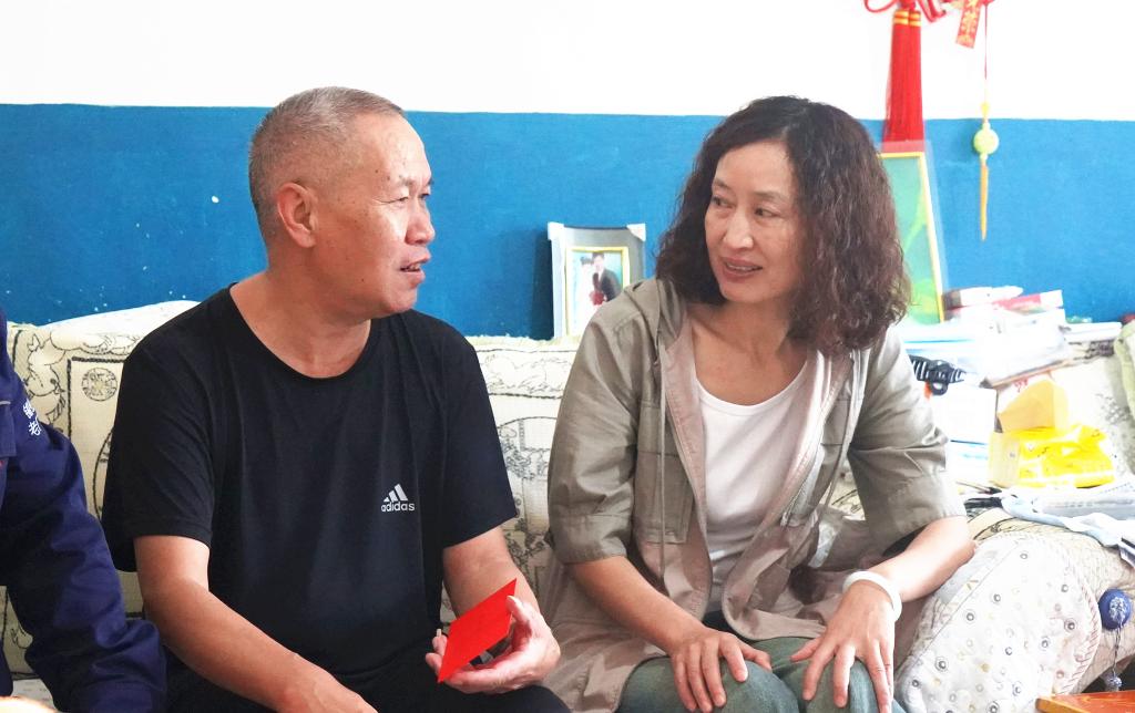 控股公司黨委委員、財(cái)務(wù)總監(jiān)胥翠芬走訪慰問退休困難人員黃喬有(程雪銳/攝)