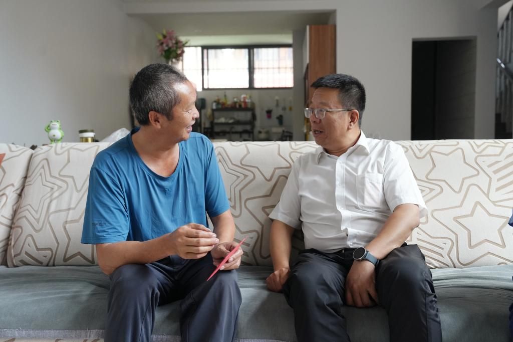 控股公司黨委副書記、工會主席劉俊走訪慰問新材料公司困難職工張文科(胡艷華/攝)
