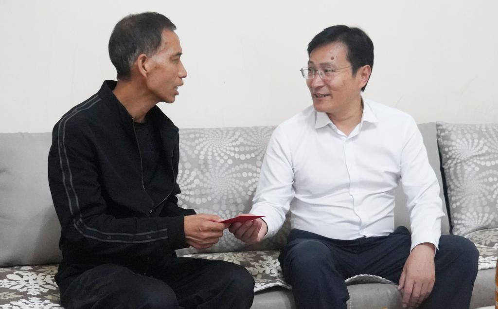 控股公司黨委委員、副總經(jīng)理宋興誠走訪慰問錫都實(shí)業(yè)困難職工魏紅鋼(徐純/攝)
