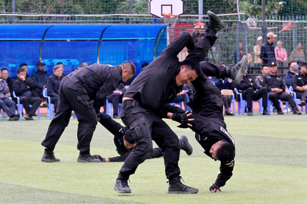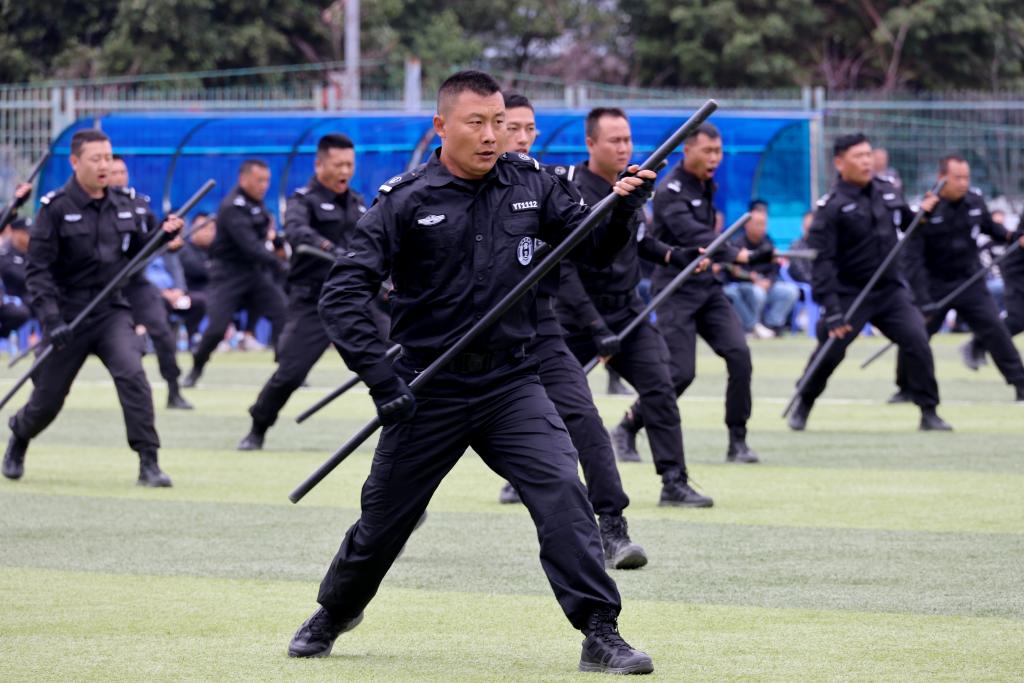 10月23日,隨著鏗鏘的一聲報告,2024年云錫綜治隊伍軍事技能匯報表演在個舊市體育場拉開帷幕。