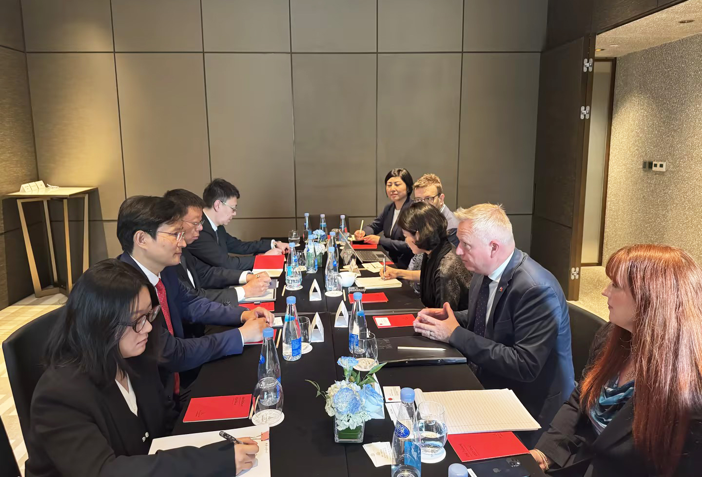 韓守禮、控股公司副總經(jīng)理李季與澳大利亞塔斯馬尼亞州州長(zhǎng)兼貿(mào)易及重大投資部部長(zhǎng)、議員杰里米·洛克利夫進(jìn)行親切會(huì)談。