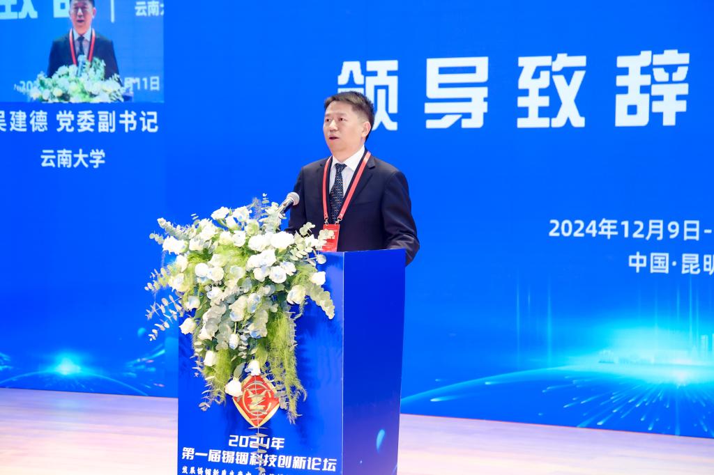 云南大學黨委副書記吳建德在致辭中表示,期望深化校企合作,強化人才引育,實現自立自強,催生更多原創性、顛覆性的科技成果,在全球錫銦新材料科技競爭中贏得更多話語權和主動權。