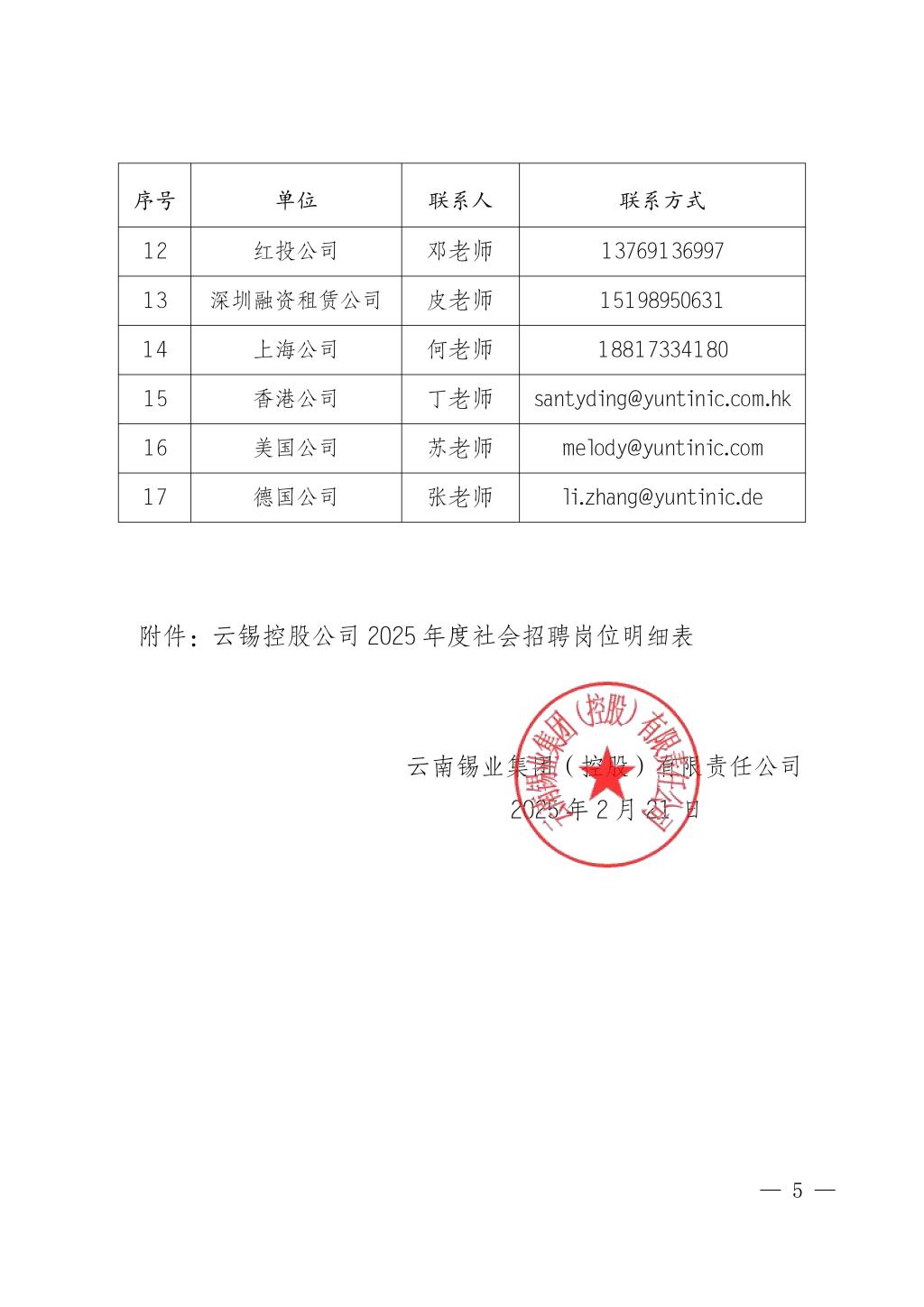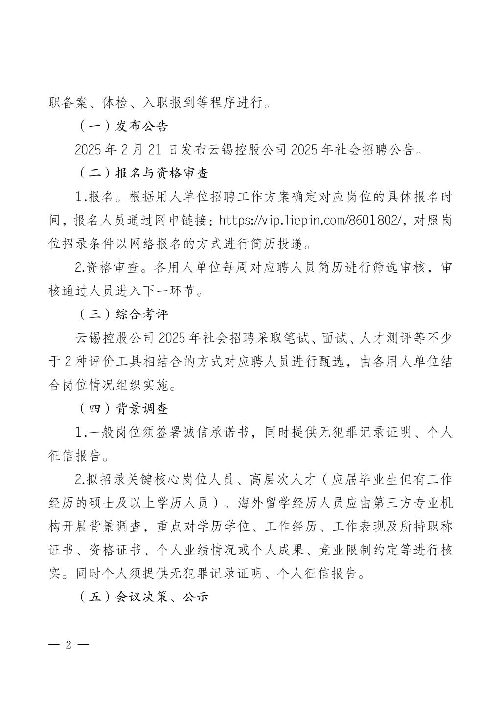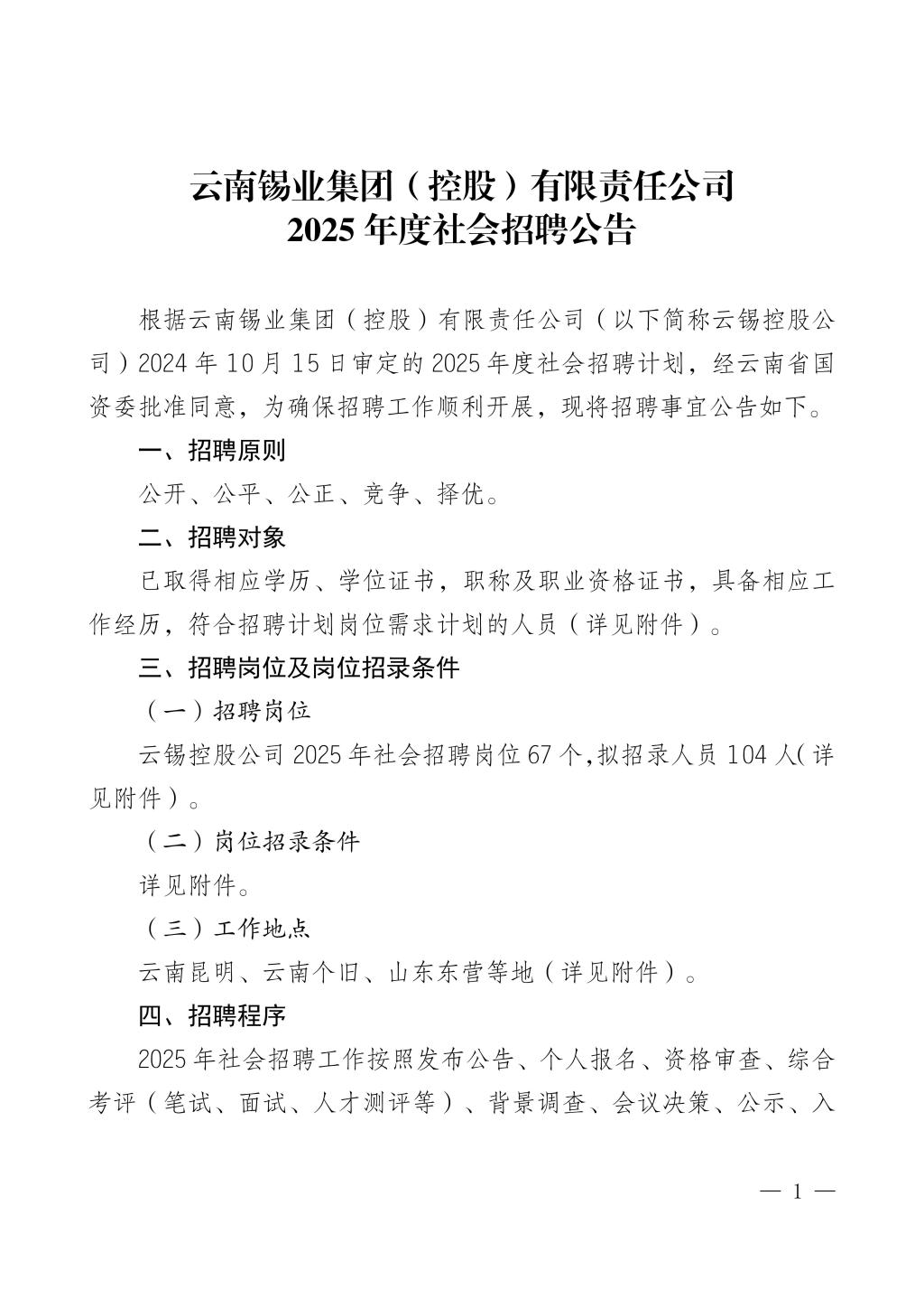 云南錫業集團(控股)有限責任公司2025年度社會招聘公告